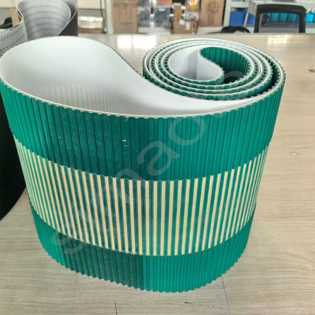 橡膠同步帶傳動是由一根內(nèi)周表面設(shè)有等間距齒形的環(huán)行帶及具有相應(yīng)吻合的輪所組成。它綜合了帶傳動、鏈傳動和齒輪傳動各自的優(yōu)點。轉(zhuǎn)動時,通過帶齒與輪的齒槽相嚙合來傳遞動力。 傳輸龍同步帶傳動具有準(zhǔn)確的傳動比,無滑差,可獲得恒定的速比,傳動平穩(wěn),能吸振,噪音小,傳動比范圍大,一般可達(dá)1:10。允許線速度可達(dá)50M/S,傳遞功率從幾瓦到百千瓦。傳動效率高,一般可達(dá)98%,結(jié)構(gòu)緊湊,適宜于多軸傳動,不需潤滑,無污染,因此可在不允許有污染和工作環(huán)境較為惡劣的場所下正常工作。 傳輸產(chǎn)品廣泛用于紡織、機床、煙草、通訊電纜、輕工、化工、冶金、儀表儀器、食品、礦山、石油、汽車等各行業(yè)各種類型的機械傳動中。橡膠同步帶的特點 		   (1)傳動準(zhǔn)確,工作時無滑動,具有恒定的傳動比;  (2)傳動平穩(wěn),具有緩沖、減振能力,噪聲低;  (3)傳動效率高,可達(dá)0.98,節(jié)能效果明顯;  (4)維護保養(yǎng)方便,不需潤滑,維護費用低;  (5)速比范圍大,一般可達(dá)10,線速度可達(dá)50m/s,具有較大的功率傳遞范圍,可達(dá)幾瓦到幾百千瓦;  (6)可用于長距離傳動,中心距可達(dá)10m以上。橡膠同步帶傳動的主要失效形式  ①帶體疲勞斷裂;   ②帶齒剪斷和壓潰;   ③帶側(cè)、帶齒磨損、包布剝離;   ④承載層伸長、節(jié)距增大、形成齒的干涉、爬齒;  ⑤沖擊、過載使帶體斷裂。